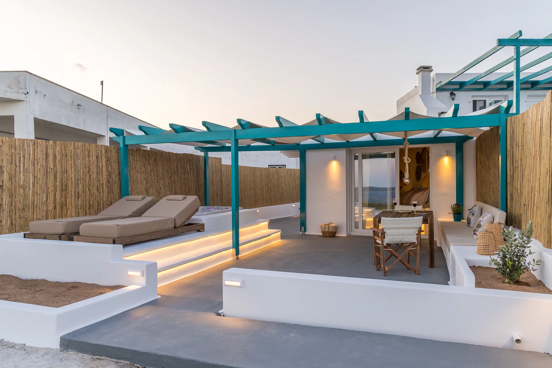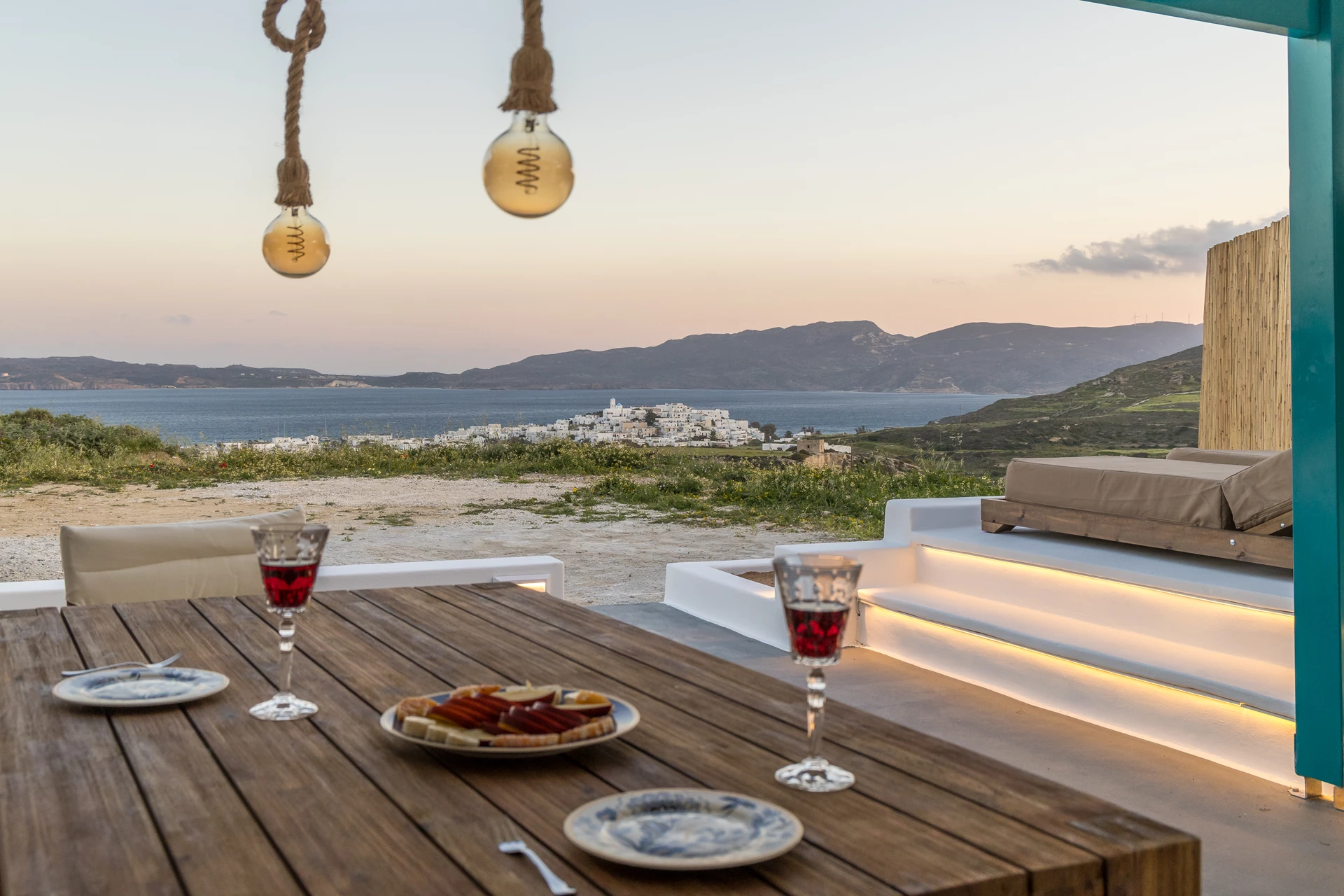 The accommodation is inspired by the colours of the iris, standing on the outskirts of Milos offering a magnificent view stretching to the horizon. The name of the accommodation reflects the unique accommodation experience, where luxury meets the tranquility of nature, creating the ideal setting for unforgettable moments.